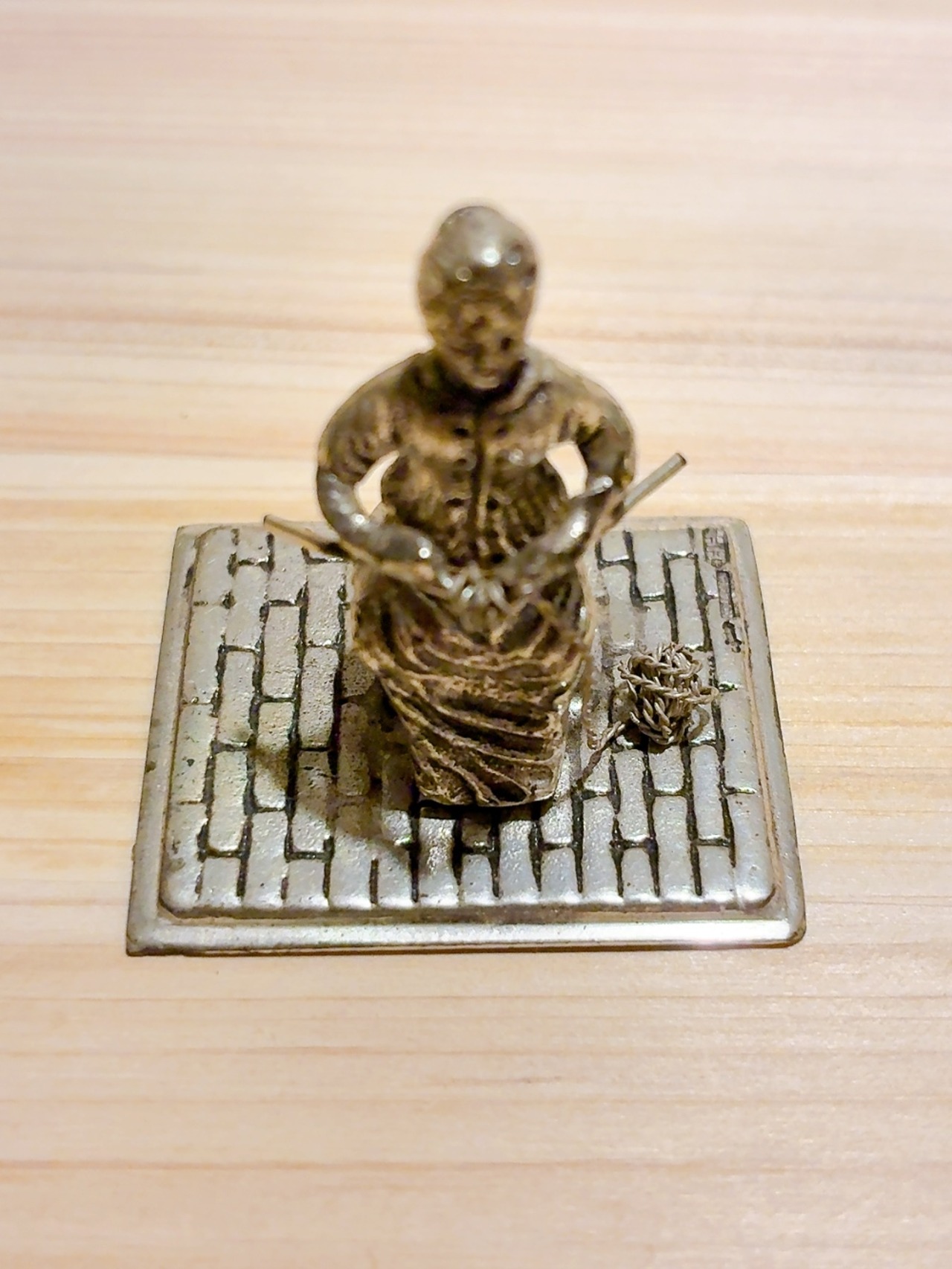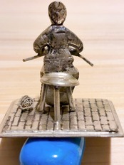 この出品は『編み物をする婦人』で、サイズは32×27×33(高)mm、約17gr.で