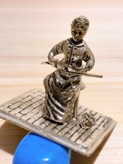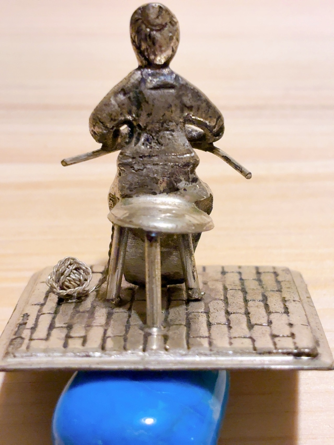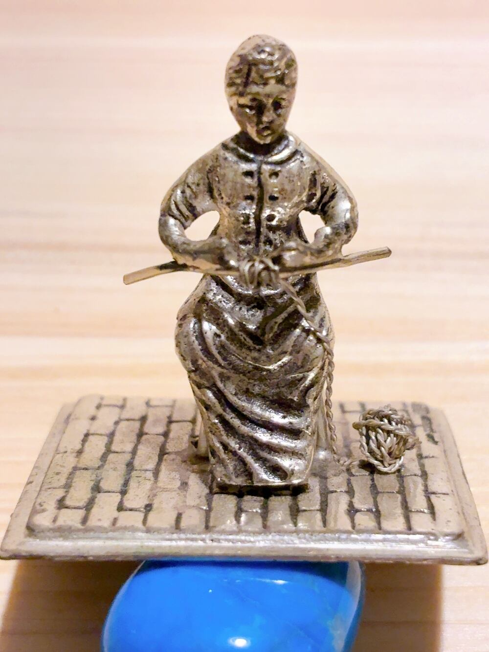 オランダHooijkaas社製、純銀835S『ミニチュア・編物する婦人』