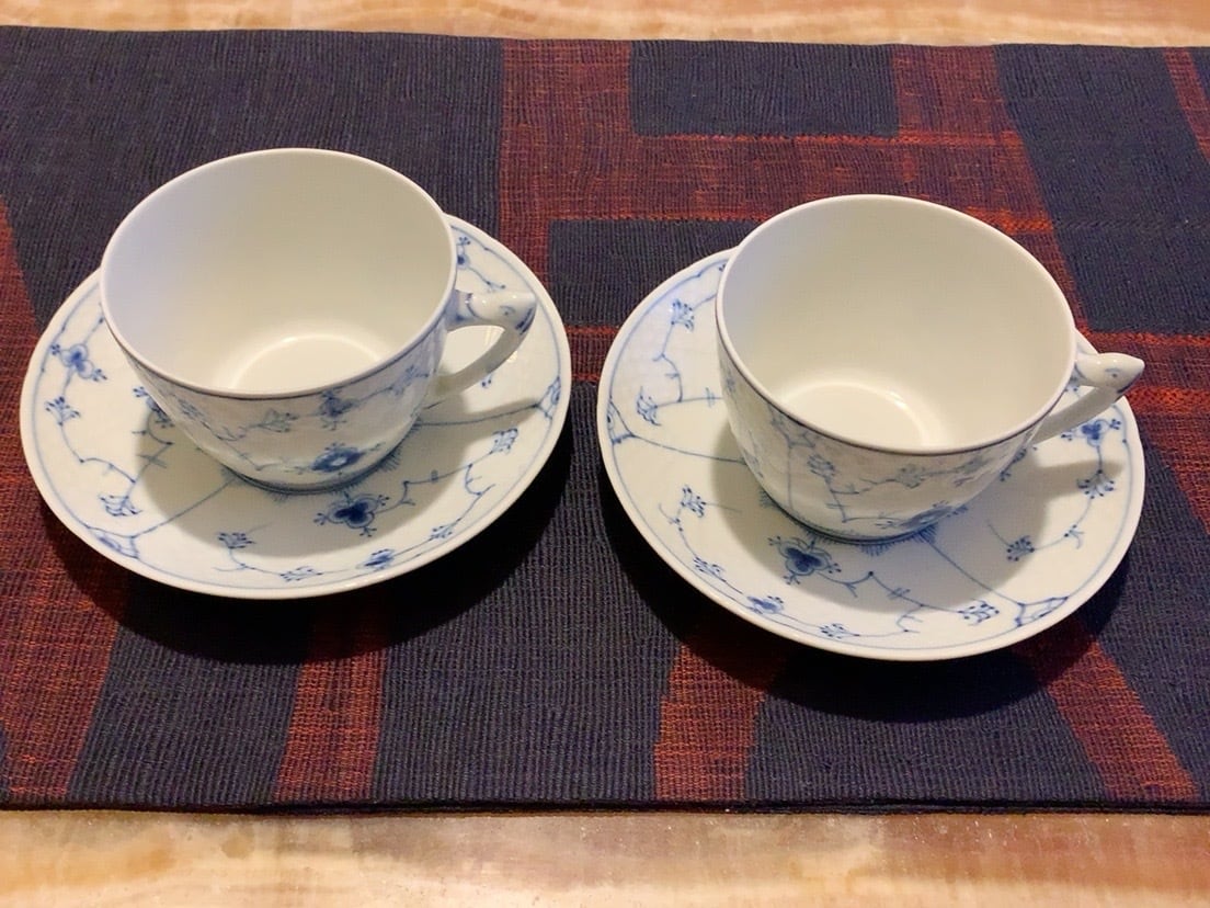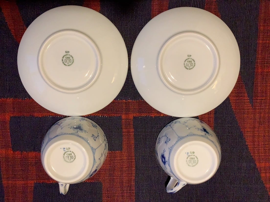 ロイヤルコペンハーゲン【B&G】 ブルーフルーテッド ティーカップ+ソーサー2客セット〈ヴィンテージ〉